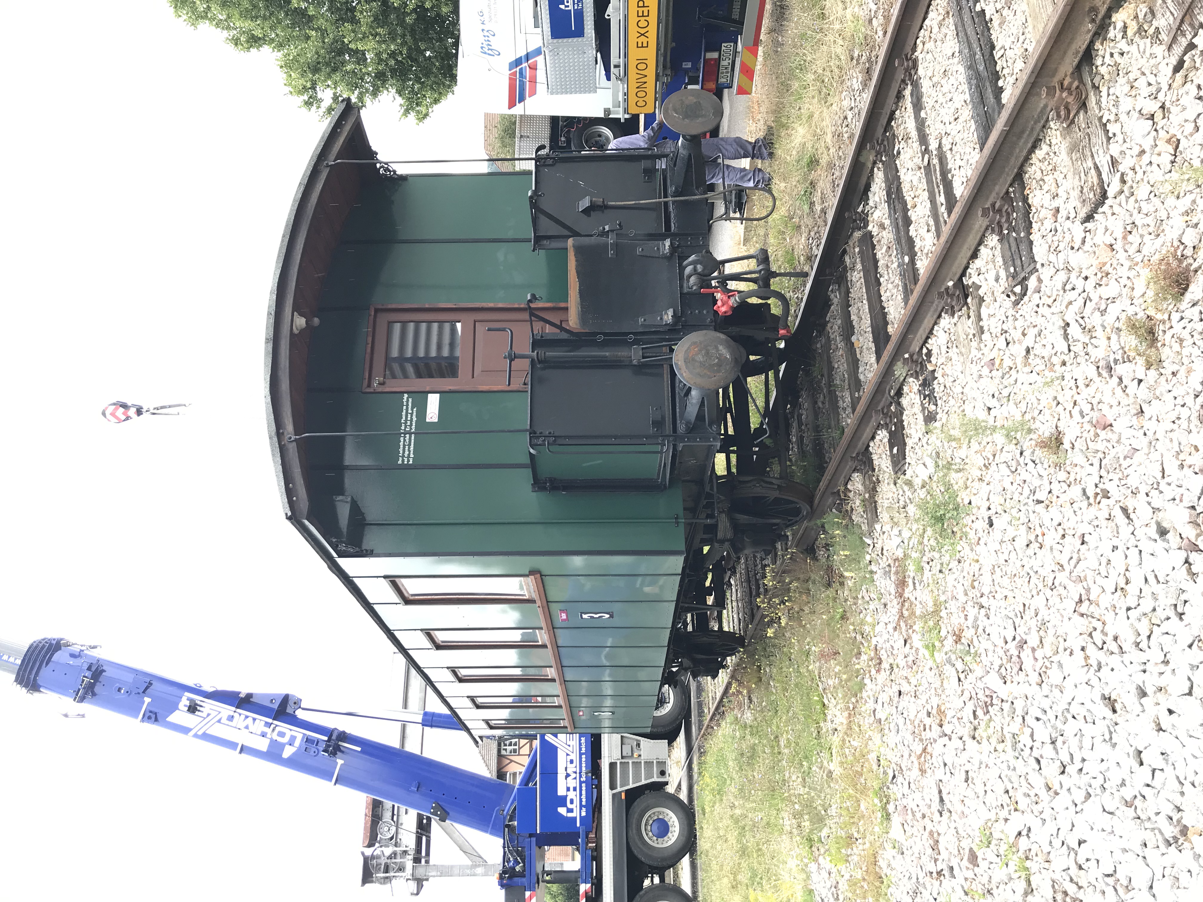 In Kandern wurde dann mit freundlicher Unterstützung des örtlichen Kranunternehmens das ganze Spiel nochmals in die andere Richtung getrieben: vom Tieflader auf die Schiene. Dies war für die Anwesenden Museumsbahner zweifelsohne als "magischer Moment" zu bezeichnen, als die beiden Wagen nach solch langer Zeit wieder auf Gleisen einer Museumsbahn abgestellt wurden.