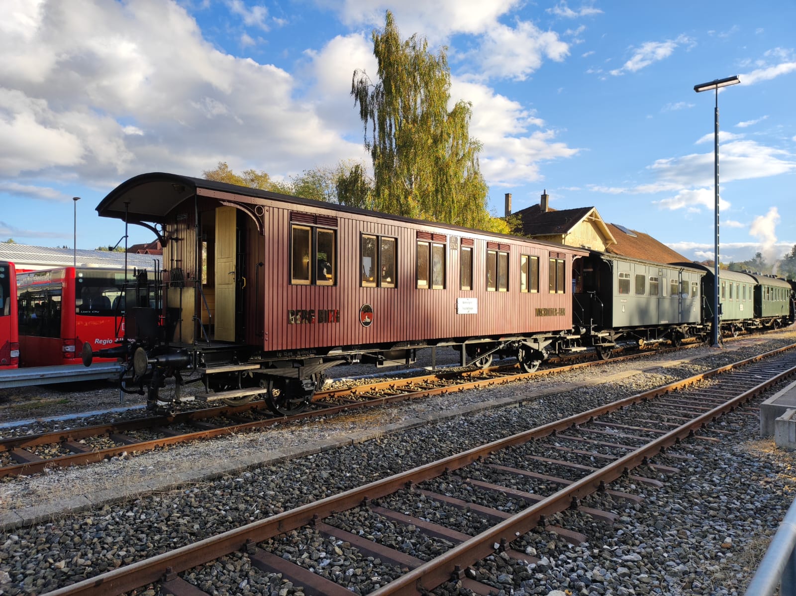 Am 15.10.23 besuchte eine kleine Gruppe AEV-Museumsbahner die befreundeten Kollegen auf der schwäbischen Alb in Münsingen. Dort war ein großes Spektakel geboten: Im Rahmen der großen Jubiläen 20 Jahre SAB, 130 Jahre Bahnstrecke Honau-Münsingen und 100 Jahre Zahnradlok 97 501 „Paula“