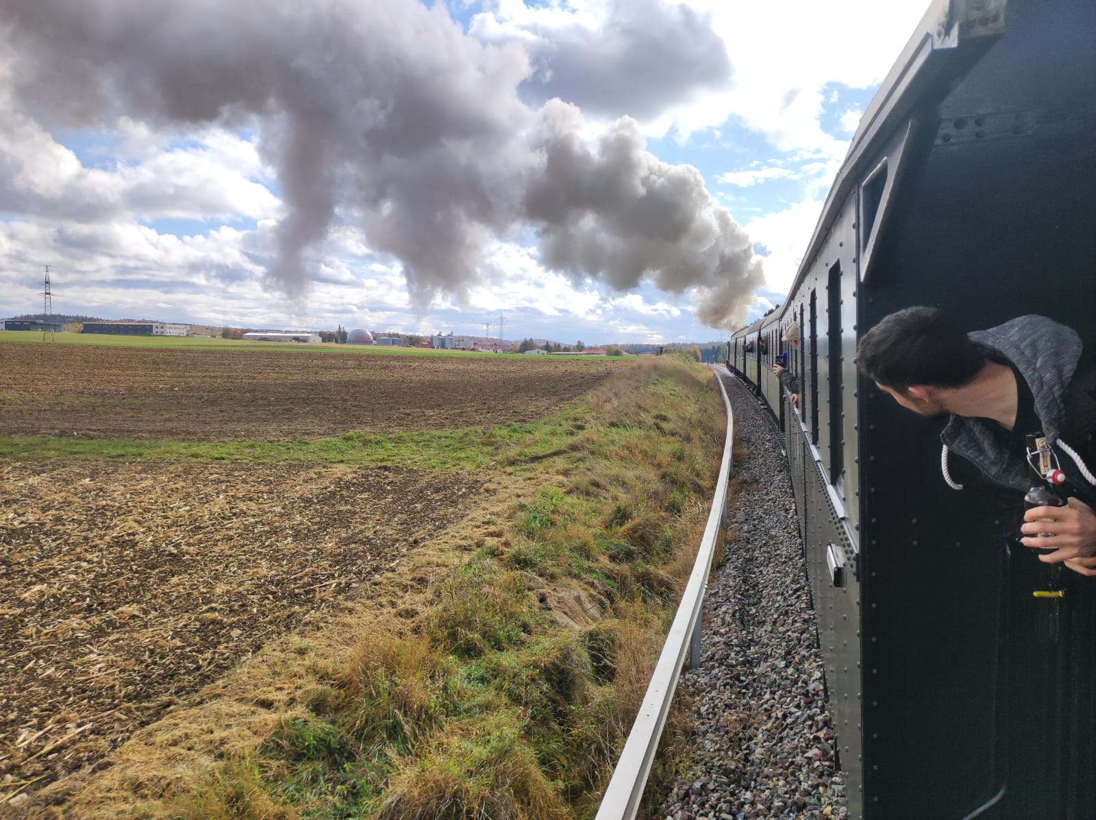 Mit Vorspannfahrten aus der T3 930, die wenige Wochen zuvor noch im Achertal zum 125 jährigen Jubiläum dort für glückliche Gesichter und höher schlagende Museumsbahnerherzen sorgte, und die Jubilarin 97 501 „Paula“ zogen einen stattlichen Zug durch die malerische Landschaft auf der schwäbischen Alb. Die Abfahrt ab 13:00 Uhr führte über Engstingen bis nach Trochtelfingen und hatte für die Elfköpfige AEV-Reisegruppe eine Menge Zeit zu bieten, einmal wieder eine Fahrt als Fahrgast zu genießen, sich mit befreundeten Museumsbahnern zu unterhalten oder einfach nur die hervorragend restaurierten Wagen der SAB zu bewundern. Allen voran sei hier die tolle Wacholderbar zu erwähnen, die durch die gute Bewirtung zum Verweilen einlud.