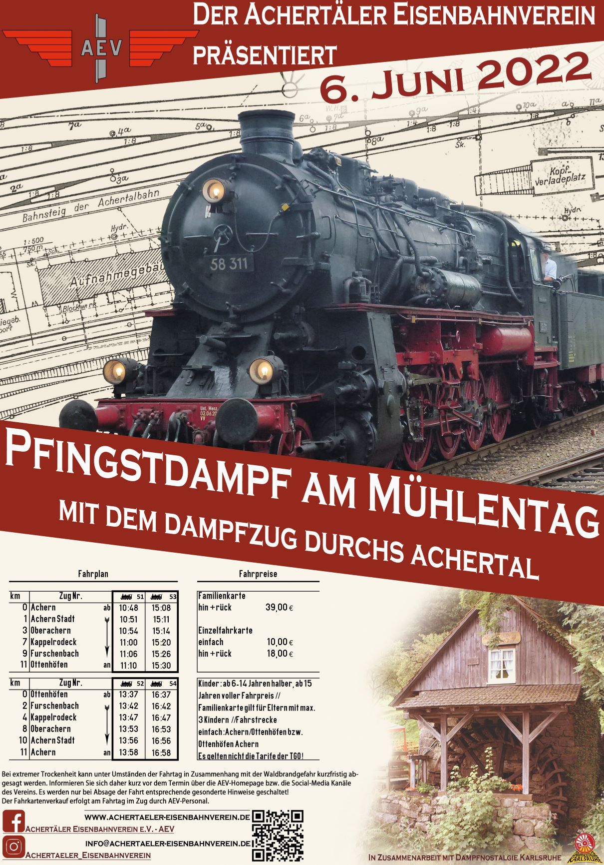 Pfingstdampf am Mühlentag / 06.06.2022 Dampfzugsonderfahrt im Achertal