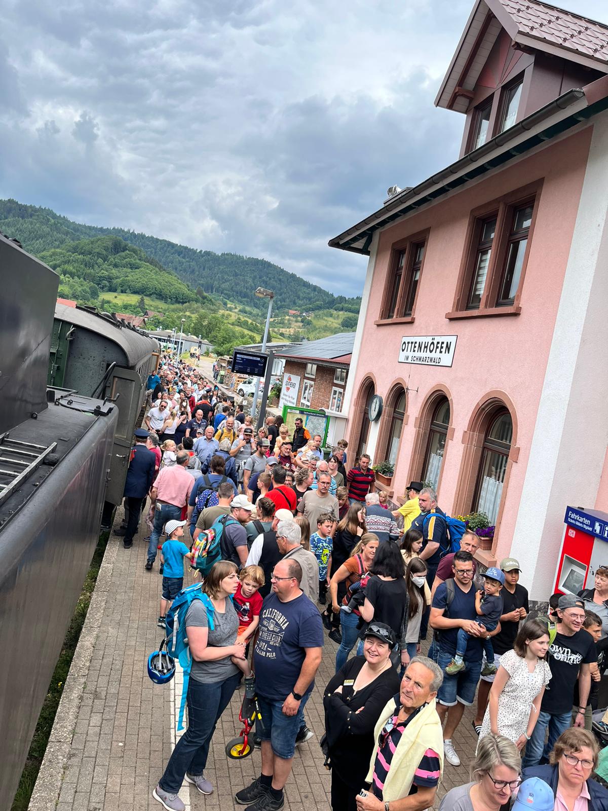 Die Strecke war gesäumt von begeisterten Menschen, die dem Zug zuwinkten. Von Ottenhöfen bis Achern hätte man beinahe ununterbrochen zurückwinken können.