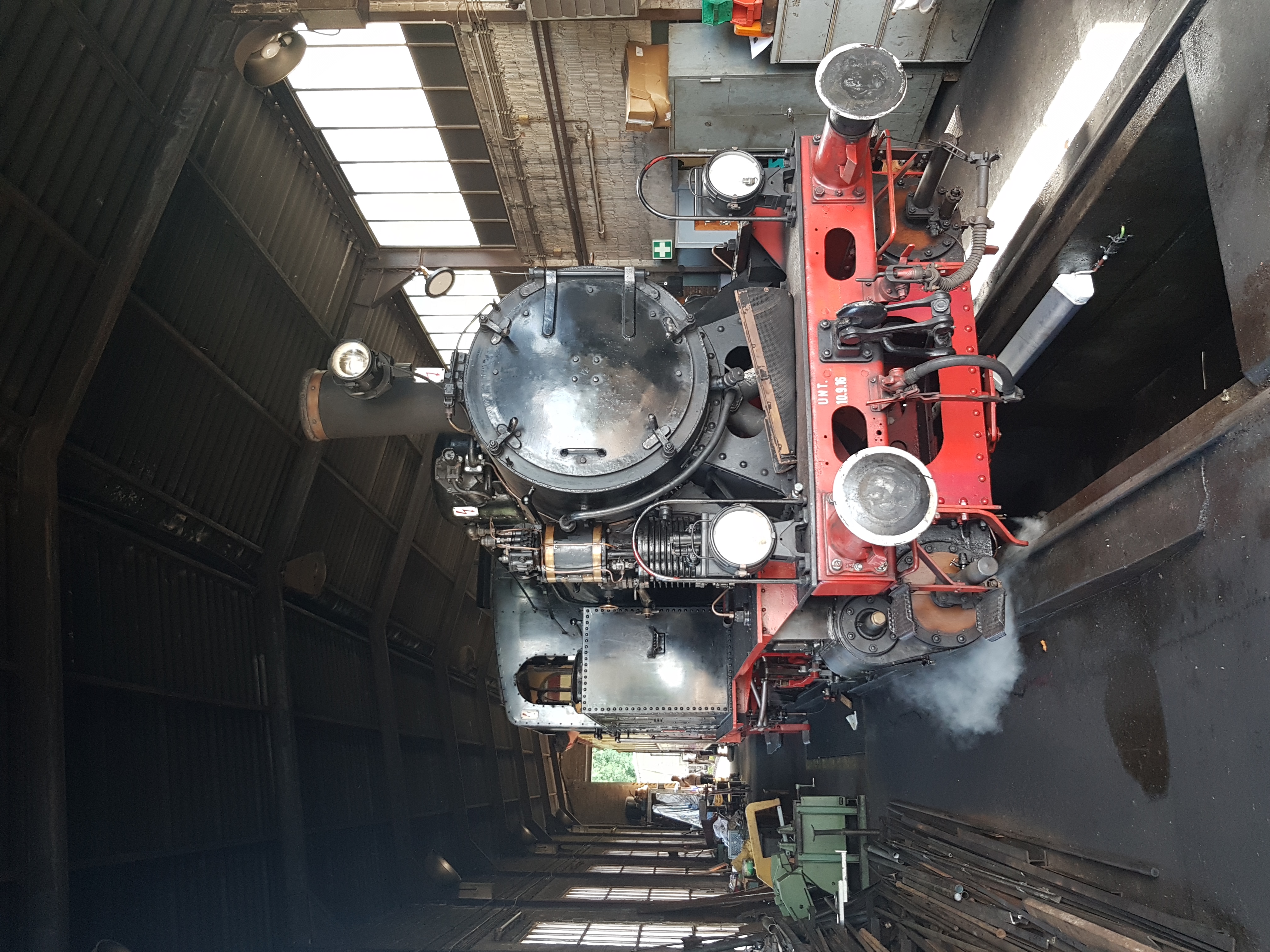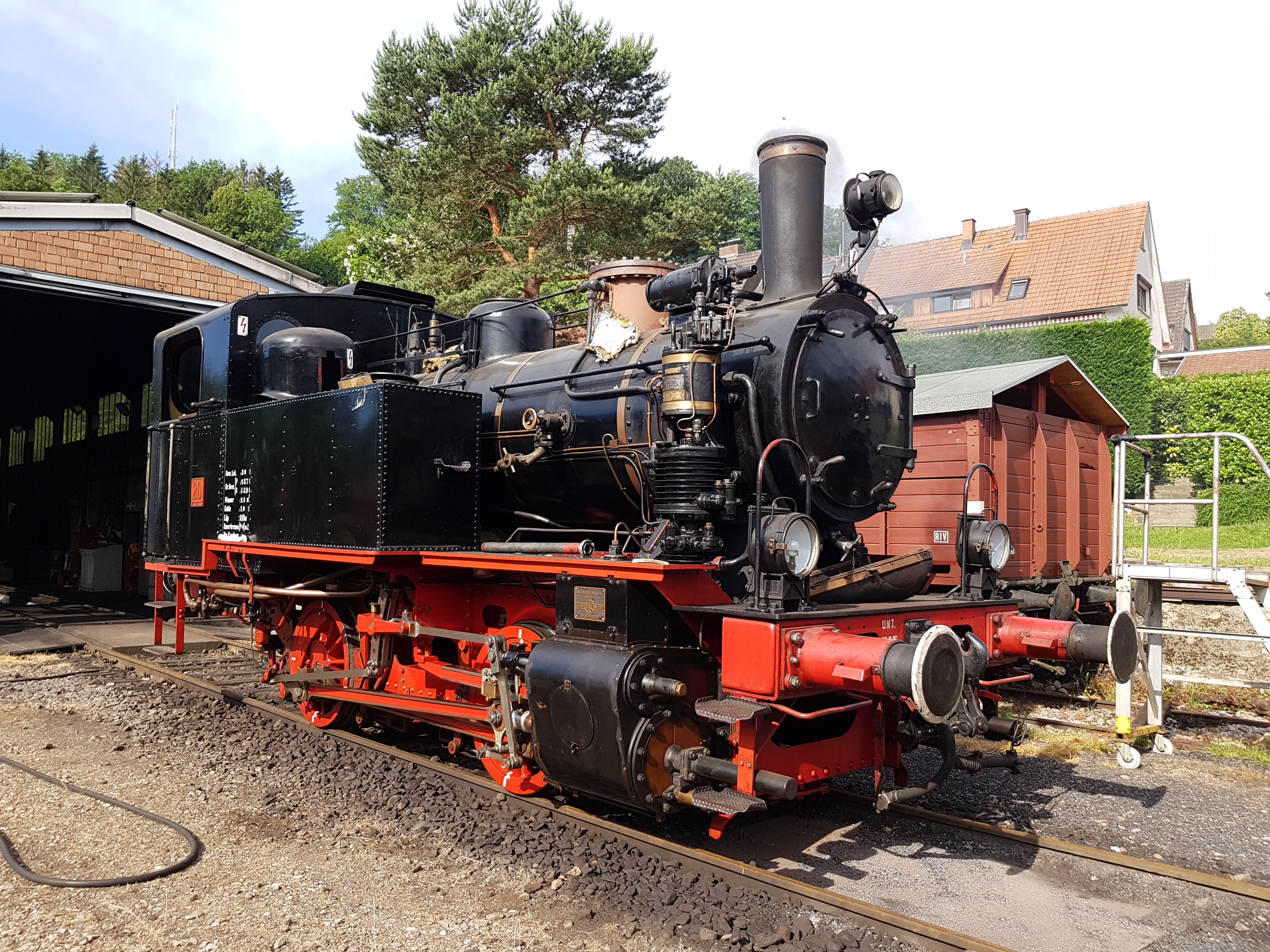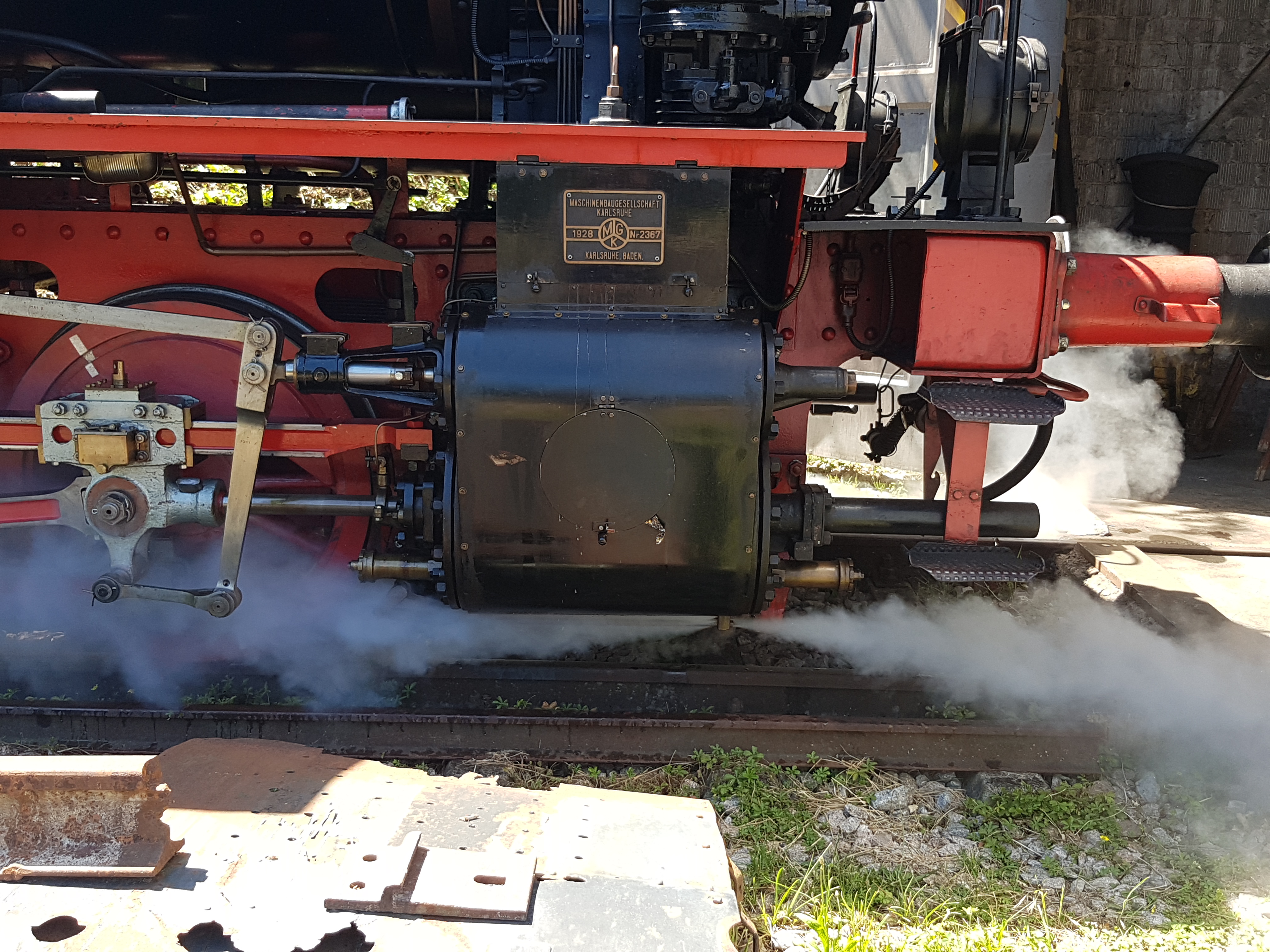 Am vergangangenen Samstag, 06.06. konnten die pandemiebedingt limitierten Werkstattplätze ergattert werden und einiges an Vorbereitung für das erste Anheizen von Lok 20 vollbracht werden. Um die notwendigen und vorschriftsgemäßen Sicherheitsabstände einhalten zu können, sind bisher lediglich 11 Personale in der Werkstatt in Kandern zugelassen. Es machten sich also drei AEVler auf den Weg, um noch einige letzte Vorbereitungen zu treffen, um dann die Lok 20 das erste Mal dieses Jahr anzuheizen. Lok 30 der KTB drehte bereits einige Tage zuvor ihre ersten Runden in 2020 und gab mit dem stilechten Nebenbahnzug ein eindrucksvolles und stimmiges Bild ab (siehe Facebook-Seite der Kandertalbahn: https://www.facebook.com/Kandertalbahn/posts/10157248564397918) Für Lok 20 wurden u.a. die Waschluken wieder montiert, nachdem die Dichtflächen entrostet wurden und die Gewinde gepflegt wurden. Ebenso wurden in der Lok 20 nochmals die Roststäbe montiert. Dies erwies sich jedoch als problematischer, wie man erwarten könnte, da die Stäbe z.T. recht stark verbogen waren und damit eine Einbaureihenfolge vorgegeben war, die sich leider nicht mehr rekonstruieren ließ. Glücklicherweise waren bereits neue Stäbe auf dem Weg, sodass es dann nicht ganz so schlimm war, als der letzte Stab beim letzten Einbauversuch durch zu starke Biegung entzwei brach. Schon beim Kesselbau wurde durch das Aw Meiningen auf zwei Reihen Roststäbe vorbereitet. Dies kann nun knapp 20 Jahre nach Kesselbau erstmals so umgesetzt werden. Das Anheizen sollte einerseits Undichtigkeiten an überholten oder ausgetauschten Teilen hervorbringen und andererseits wurde dies gleich noch genutzt um "Manöver" im Bahnhof Kandern zu machen. Undichtigkeiten gab es glücklicherweise keine, ebenso tat auch alles an der Lok wie es sollte. Das Wort Manöver lässt einen womöglich zunächst an eine militärische Aktion o.ä. denken. Manöver machen heißt auch in anderen Teilen des Landes einfach nur Rangieren. Der Begriff soll überwiegend unter badischen Eisenbahnern verbreitet sein und dementsprechend auch hier seinen Urpsrung haben. So bestand diese Manöver darin etwas Rollmaterial zur Überführung nach Haltingen zusammenzustellen, was man in diesem Zuge gleich stilvoll und stilecht mittels Dampfkraft machen konnte. Nun zum Text noch etwas Bildmaterial.