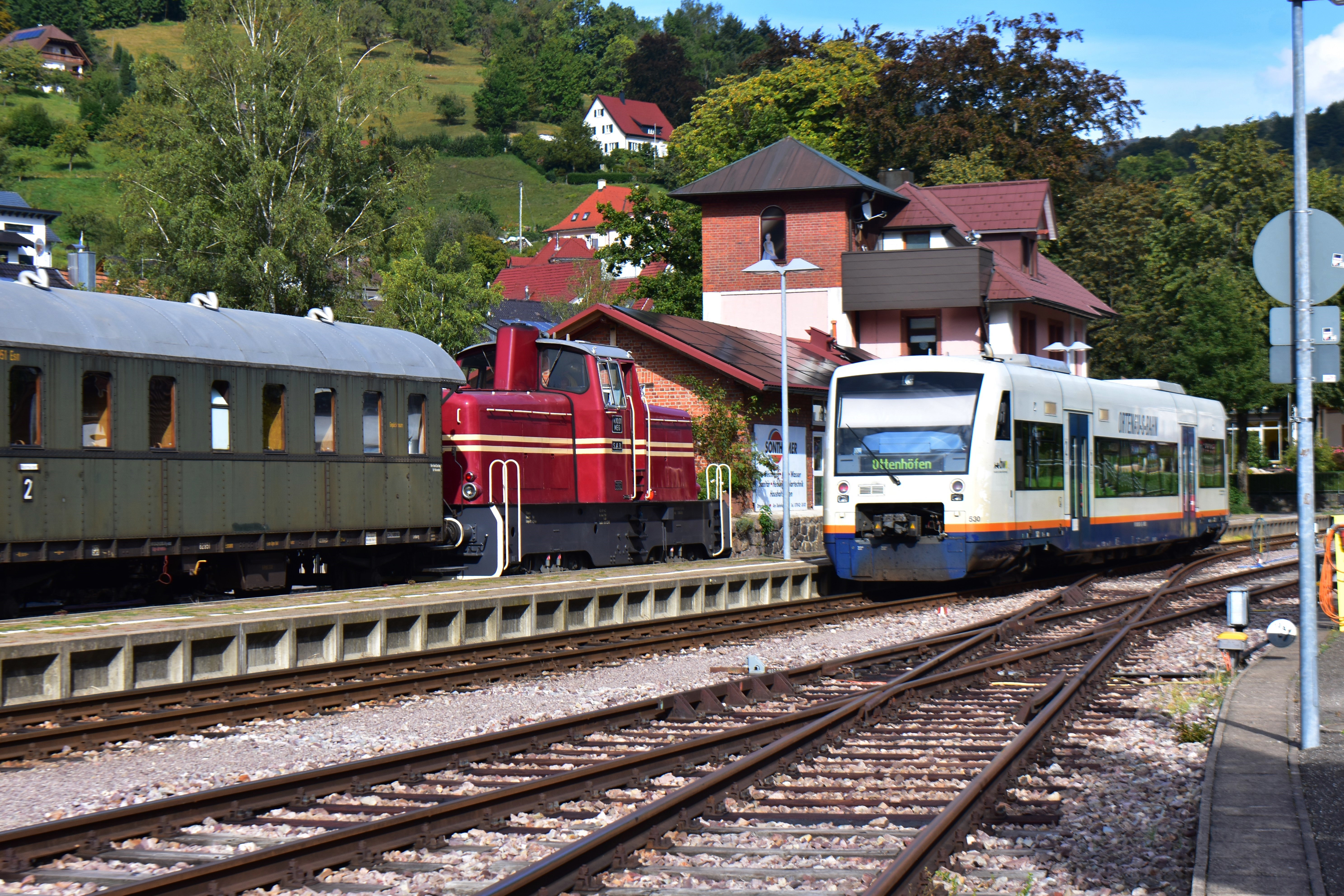 … sie ist wieder da – zumindest für einige Tage – die gute alte V70, wie sie jahrelang Alltagsbild im achertäler Güter- und Personenverkehr war. Und was bringt sie uns mit? Richtig! Die Personenwagen, in welchen am kommenden Sonntag unsere Fahrgäste im Dampfzug durch die Landschaft fahren werden!