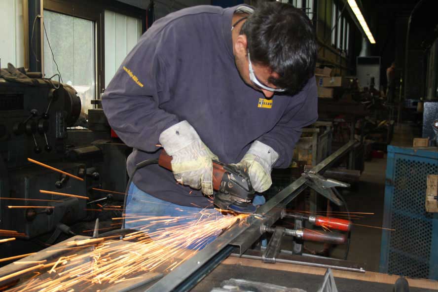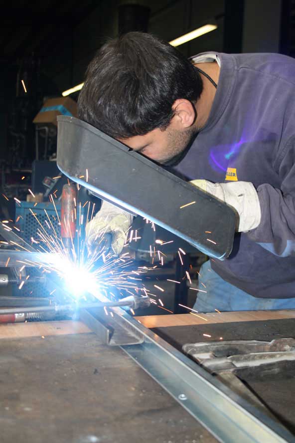 Die beiden Hälften der Rinne werden zusammengeschweißt.