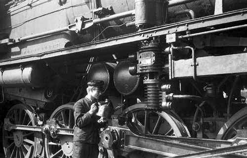 Blick ins Übergabebuch: - 392 Nachschau-Km - Mist! Am Feierabend ist eine Nachschau fällig. Das bedeutet zum Abölen unter der Lok durchkriechen, Ölkannenschleppen und danach den ölversauten Arbeitsanzug tauschen. Eine Stunde später Feierabend. Das fängt ja gut an. Dass ich mich so früh (20 Minuten vor Dienstbeginn!) melde, hat seinen Grund: So habe ich vor Eintreffen meines Lokführers Hermann Zeit den Führerstand in Ordnung zu bringen und auszuspritzen. Von der Decke bis zum Fußboden. Wenn Hermann nämlich erst auf seinem Hocker sitzt, ist es dafür zu spät. Höchstens stellt er dann mal seine Füße auf den Steuerbock hoch und lässt seinen kritischen Blick zuerst über mich, dann zum Boden unter seinen Füßen. wandern. Das bedeutet dann, ich solle unter ihm durchfegen. Hermann achtet sehr auf einen sauberen Führerstand, aber einen Großputz, wenn er schon auf der Lok ist und den Lokdienstzettel schreibt, mag er nicht leiden.Eigentlich ist er ganz in Ordnung, der Herrmann - für sein Alter. Er ist bestimmt 40 Jahre älter als ich und noch einer der "Alten Herren" mit Uhrkette und so.